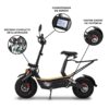 Os pneus da marca CST 145/70-6 sem câmara tornam os Patinetes Elétricos TD-Monster legítimos Off-Road, oferecendo maior durabilidade, estabilidade, maciez e controle ao pilotar. Conta com fator IP51, oferecendo proteção contra sólidos, pedras no caminho, poeira e leve resistência a pingos de chuva.