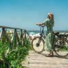 Design exclusivo da marca, quadro e garfo de alumínio planejada para pessoas que querem aproveitar os passeios diários com o maior conforto possível.