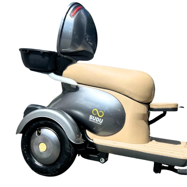 O visual do Sudu A3T chama atenção por onde passa. Com linhas suaves, pintura brilhante e cores que variam entre o Cinza, Rosa e Bege, ele remete aos clássicos europeus com um toque contemporâneo. O banco duplo com encosto ergonômico oferece conforto para o condutor e passageiro, tornando cada viagem mais agradável.